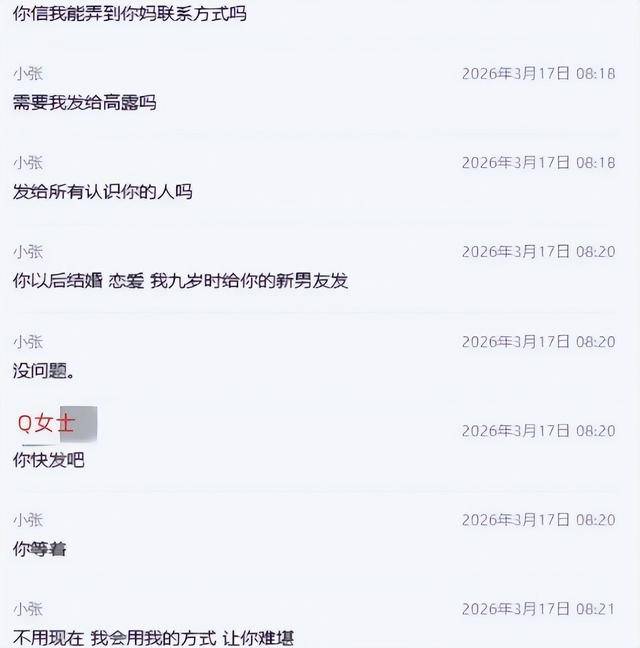 她扬言要把Q小姐的裸照发给她的家人、恩人,乃至来日的同伙,让她彻底社死。